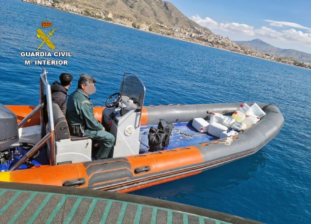 Estas incesantes labores de vigilancia permitieron detectar la presencia de una lancha rápida, que navegaba próxima a la isla de Los Lobos, en Bolnuevo-Mazarrón.