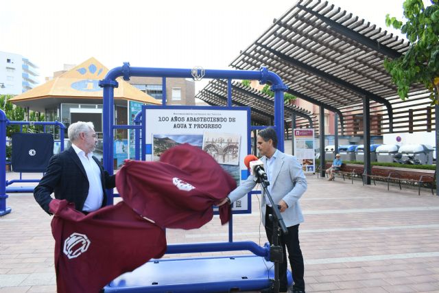 La exposición itinerante que repasa los 100 años de historia de la Mancomunidad de los Canales del Taibilla llega a Mazarrón. Juan Cascales, presidente de la MCT, y Ginés Campillo, alcalde de la localidad, han inaugurado la muestra instalada en la Plaza Toneleros de Puerto de Mazarrón, donde podrá ser visitada por vecinos y visitantes hasta el próximo 12 de agosto.