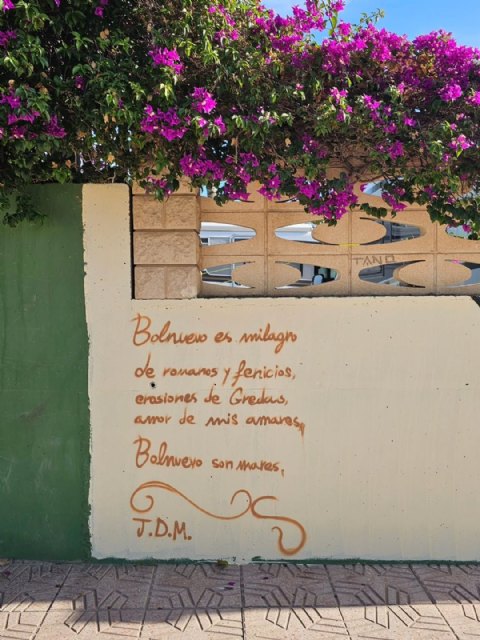 El arte urbano vuelve a embellecer las calles de Mazarrón con una nueva obra que fusiona poesía y pintura. El reconocido muralista Amado Skills ha creado un nuevo mural en Bolnuevo, que da la bienvenida al emblemático enclave costero con una composición visual de gran belleza, acompañada de versos del músico y empresario murciano José Daniel Martínez (fundador de Grupo Editorial La de Grandes Detalles). El proyecto ha sido apoyado por Miguel Ángel Peña y por el Ayuntamiento de Mazarrón.