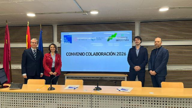 Murcia, 12 de febrero de 2026. — The Open Faculty, el centro universitario que imparte los grados de Relaciones Internacionales y Turismo en la Universidad de Murcia, ha firmado esta semana, en el salón de actos de la facultad, un convenio de colaboración que otorgará plazas de alojamiento prioritarias a los estudiantes de los grados de Relaciones Internacionales, Turismo y el máster en Gestión Hotelera.