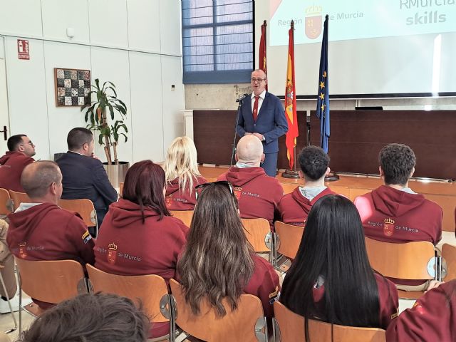 El titular de Educación entregó a los participantes una bandera de la Región de Murcia, les deseó suerte y "que consigan el mayor número de medallas posible", al tiempo que aseguró que "este tipo de competiciones visibiliza la FP y motiva a los estudiantes y profesores para continuar trabajando a la excelencia". El lema del equipo es 'Región de Murcia: cabeza, corazón y FP'.