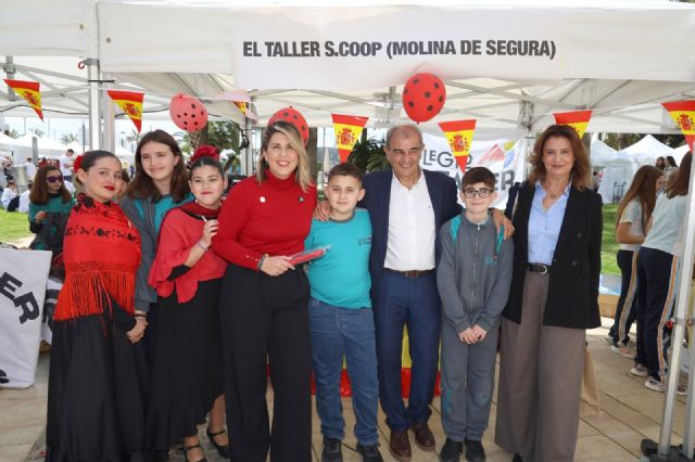 La secretaria general de la Consejería de Educación y Formación Profesional, Carmen María Zamora, junto con la alcaldesa de Cartagena, Noelia Arroyo, y el presidente de Ucoerm, Juan Antonio Pedreño, visitaron los 60 estands donde estudiantes de entre 8 y 20 años, de 34 centros educativos de la Región, muestran las 68 cooperativas que han creado.