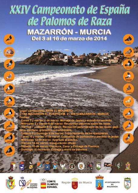 La muestra de palomos se abrirá al público a partir del 12 de marzo y la entrega de premios está prevista para el sábado 15