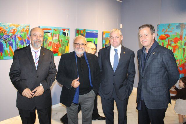 El pintor murciano muestra en Mazarrón "Luz Herida", una obra pictórica inspirada en la palmera mediterránea como principal elemento
