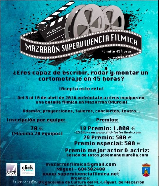 Los grupos participantes tendrán 45 horas para rodar un cortometraje en el que tendrán que incluir una localización de Mazarrón, un género y un elemento sorpresa que serán sorteados