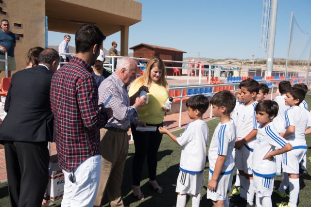 El delegado de campo del Santiago Bernabéu, Agustín Herrerín, encabeza la visita institucional a una escuela que ofrece el 60% de sus plazas a familias con riesgo de exclusión social