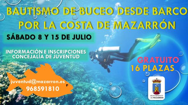 Actividad gratuita a realizar los sábados 8 y 15 de julio. Dirigida a jóvenes de 14 a 35 años. Solicitudes en juventud@mazarron.es
