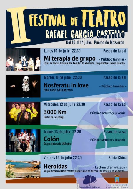 Del lunes 10 al viernes 14 de julio en el Paseo de la Sal y Bahía Chica se representarán, al aire libre y con acceso gratuito, cinco obras teatrales para todos los públicos