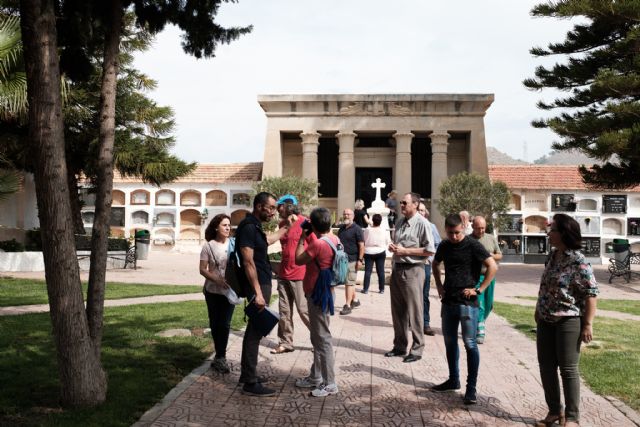 El periodista Miguel Rubio guía a los visitantes aportando detalles de la historia oculta del camposanto que abrió sus puertas en pleno esplendor minero