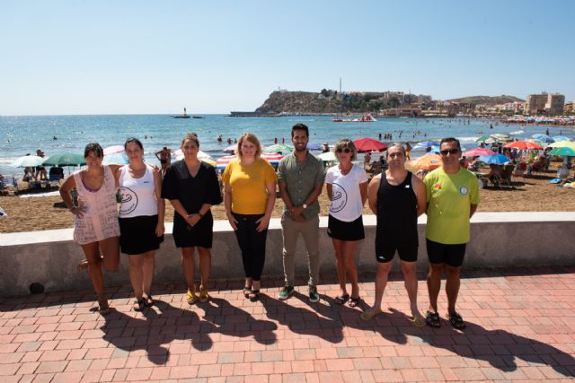 Margarita Domínguez, subcampeona del Mundo, inaugura unas instalaciones que están ubicadas en la playa del Puerto. Un balizamiento asegura la práctica deportiva a los centenares de nadadores que eligen Mazarrón para su entrenamiento