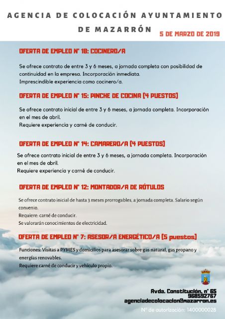 Las personas interesadas deben acudir al Centro de Iniciativas Municipales de Empleo (CIME) ubicado en la Avenida de la Constitución de Mazarrón