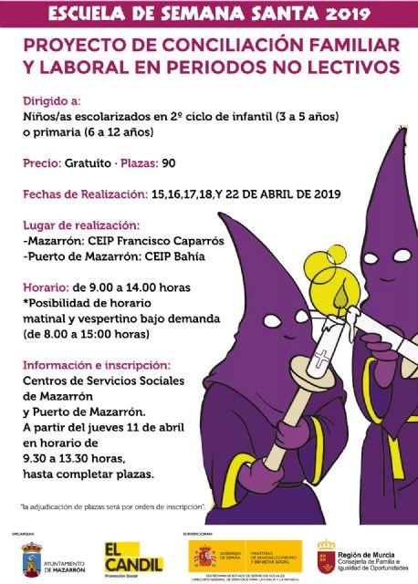 Programa gratuito municipal para conciliar la vida familiar y laboral en periodo no lectivo. Hay 90 plazas dirigidas a niños de segundo ciclo de Infantil y de Primaria