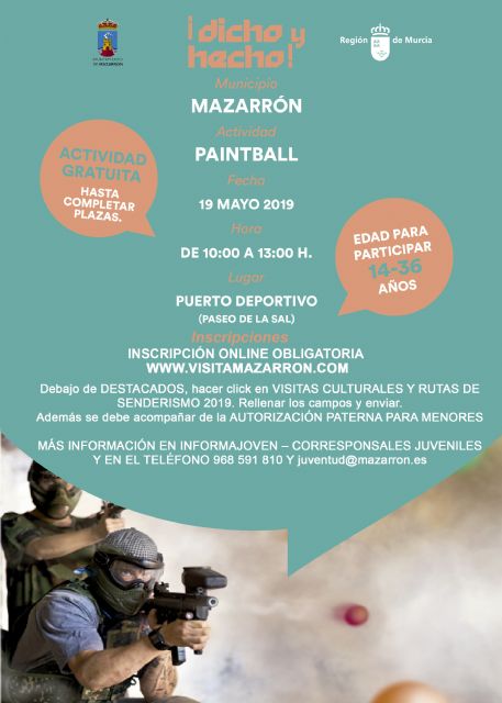 Actividad gratuita organizada por la Dirección General y la Concejalía de Juventud. Inscripciones on line en la web de Visita Mazarrón