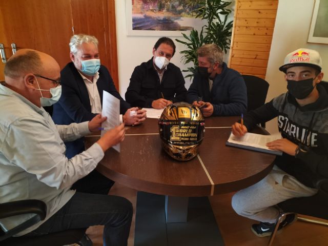 03/01/2022 El ayuntamiento de Mazarrón apuesta por Pedro Acosta, piloto de moto2, con la firma del convenio de patrocinio para la promoción de la marca "Bahía de Mazarrón"