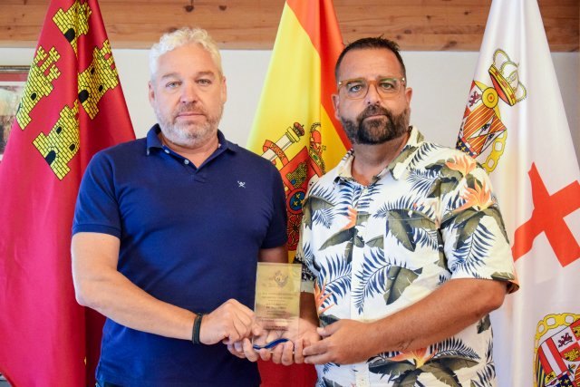 Francisco Cano, director de Prevención y Seguridad de la Real Federación de Salvamento y Socorrismo, entregó el obsequio al alcalde Ginés Campillo