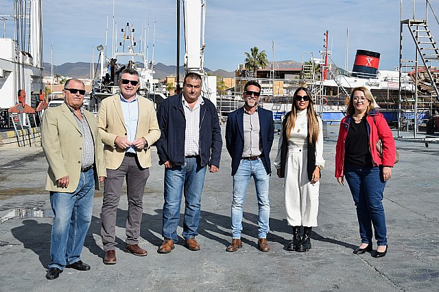 Ana Ruiz, junto a los miembros de la Cofradía de Pescadores, acompañó a Pablo Marín en su visita al varadero, lonja e infraestructuras portuarias del municipio