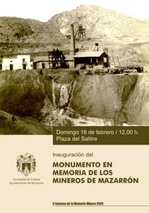 El próximo domingo 16 de febrero a las 12:00 horas, se llevará a cabo en la Plaza del Salitre la inauguración del Monumento en Memoria de los Mineros de Mazarrón